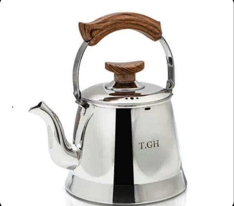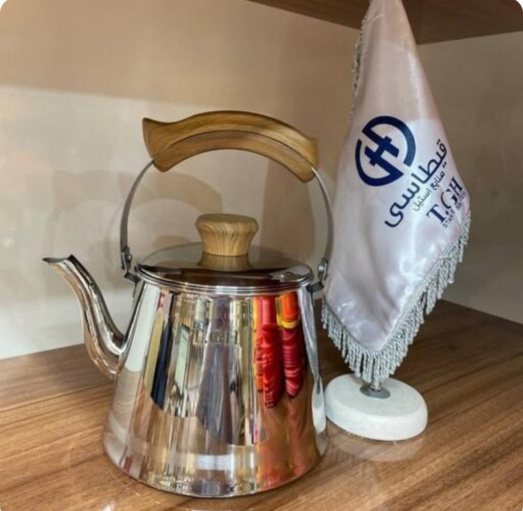 کتری ۲/۵لیتر کف چدن استیل براق دستگیره طرح چوب قیطاسی کد ۳۰۸۰۵