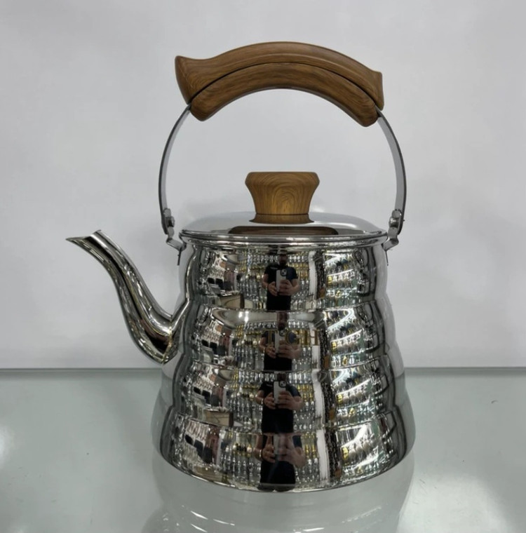 کتری ۲/۵لیترکف چدن استیل براق دستگیره طرح چوب قیطاسی کد۳۰۶۰۵