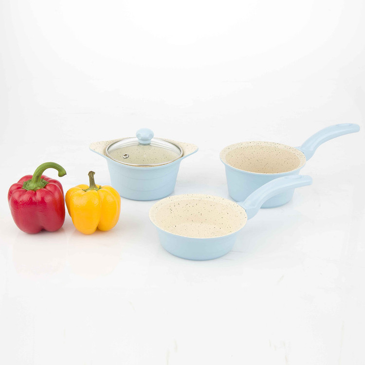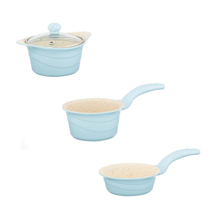 یکی از لوازمی که برای سیسمونی های نوزادان و کودکان خریداری میشود سرویس نوزاد میباشد.معمولا هر پدر و مادری این محصول را در لیست خرید سیسمونی های خود قرار میدهند . سرویس سیسمونی دیاکو با طراحی زیبا، خوش رنگ و شاد و با پوشش سرامیکی هم شادابی را برای کودکان به ارمغان می آورد هم خیال شما را برای داشتن یک پخت و پز سالم برای کودکتان راحت می کند. کودکان نیاز دارند که در طول شبانه روز برای رشد بهتر 5 وعده غذا بخورند .همچنین برای جلوگیری از بیماری و عفونت باید غذاهای تازه میل کنند . به همین دلیل شما باید برای آن ها سرویس قابلمه جداگانه ای را تهیه نمایید .ما برای این منظول سرویس قابلمه نوزاد را به شما پیشنهاد میکنیم . این سرویس حتی میتواند زیبایی بالایی را به سیسمونی شما ببخشد .این سرویس دارای یک قابلمه یک تابه یک شیرجوش و یک درب که مناسب برای هر سه میباشد است . جنس این قابلمه نوزادی گرانیت میباشد و نچسب است و در ان مواد با کیفیتی به کار رفته که به سلامتی فرزند شما اسیبی وارد نمیکند.